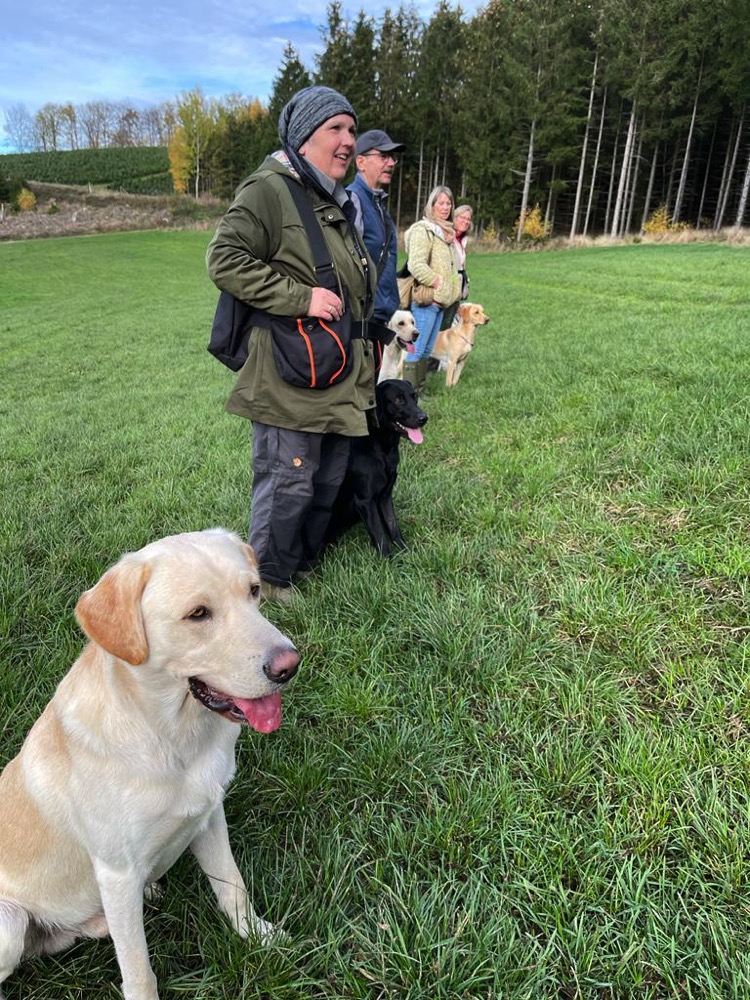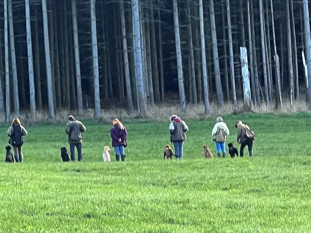 Training am Klaukenhof mit Kristina Räder. Tina hat tolle Aufgaben gestellt – die alle Hunde lösen konnten – mit und ohne Hilfestellung. Insgesamt waren 8 Hunde dabei. (4 Labis, 2 Flats und 2 Golden)