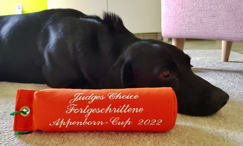Unser Jüngster „Buddy“ hat die Dummy A bestanden und ist hier Suchensieger geworden. 😊