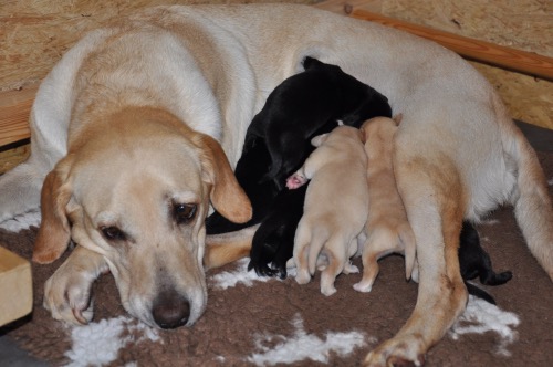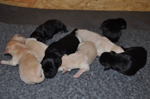 11.09.2017 Die Welpen sind da. Vier Gelbe und vier Schwarze. Drei Rüden und fünf Hündinnen. Ende Oktober werden wir die Welpen besuchen.