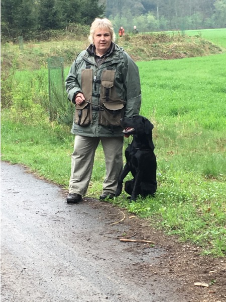 19.05.2017 Beim heutigen Ansitz kam Helga auf einen braven 6er zu Schuß. Mit Blattschuß sprang der Bock am Rande einer Schneise in den dichten Bestand. Ohne lange zu warten, da das Licht nicht mehr lange hielt, brachte Thorsten Corvin. Helga arbeitete ca. 25m auf dem Feld mit Corvin am Riemen, bevor es in den Bestand ging. Hier kamen beide zusammen nicht mehr weiter und Helga schickte Corvin zum Bringseln. Nach kurzer Zeit kam er mit Bringsel im Fang zurück und wir krabbelten auf allen Vieren hinter Corvin her. Nach 20m lag der Bock verendet in den Ästen. Wieder eine hervorragende Arbeit von Corvin und Helga.
