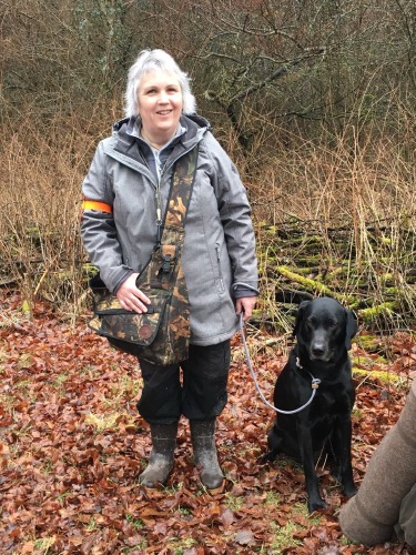 In Teamarbeit mit Henia war die Nachsuche erfolgreich. Corvin verschwand im dichten Unterholz und trieb die Gans raus so dass Henia die Gans apportieren konnte.