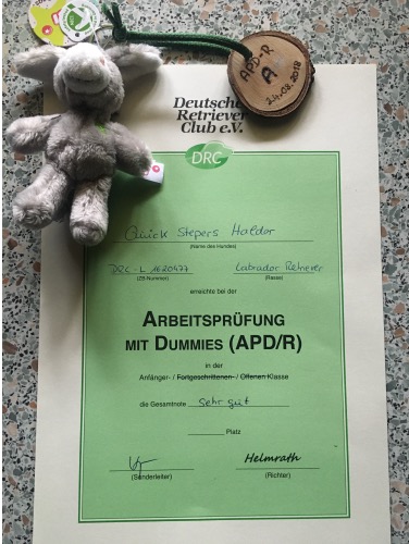 Heute starte ich mit Garron in A. Bei tollem Wetter und vielen netten Leuten holen Garron und ich alle Dummies erfolgreich rein und bestehen mit sehr gut. Garron ist wie immer eifrig 😏 und freudig 😁 dabei.