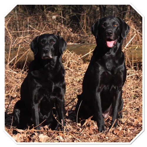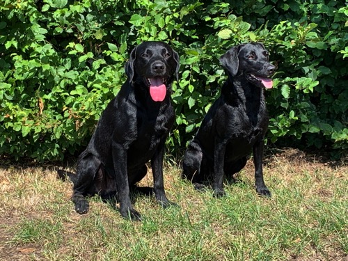 Zwei schwarze Rüden, drei gelbe Rüden, zwei schwarze Hündinnen und zwei gelbe Hündinnen.
