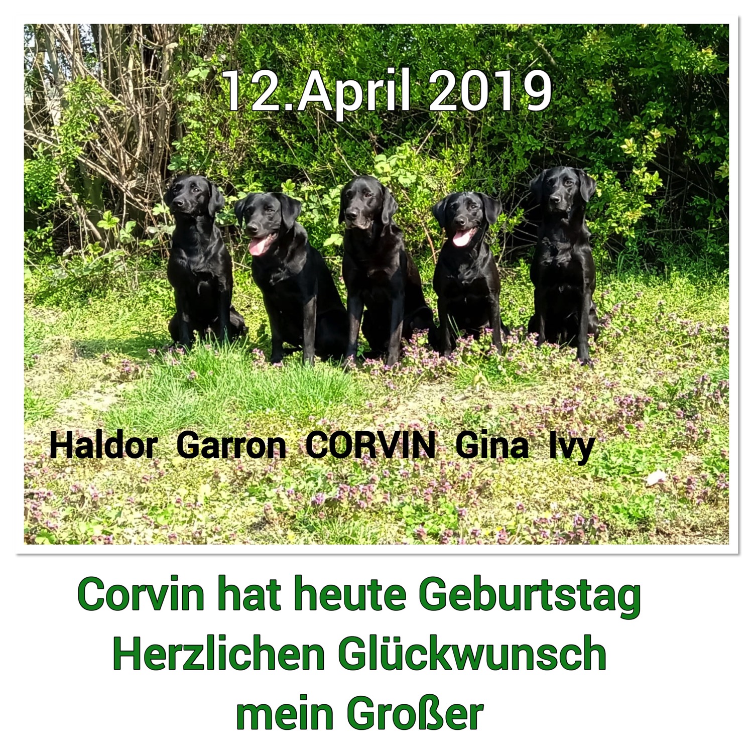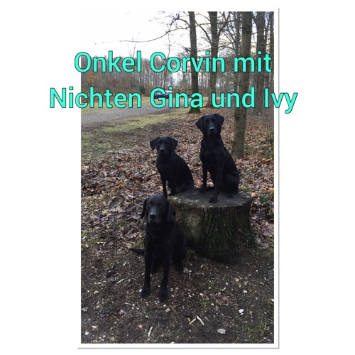 Corvin ist mit uns nach Bottrop zu Nura und den Welpen gefahren. Nura hat Corvin freundlich empfangen. Danach ging es gemeinsam zu den Welpen, die neugierig den "neuen großen Schwarzen" inspizierten. Der Garten wurde gemeinsam erobert. Wieder war Corvin sehr freundlich zu seinen Nachkommen und wir freuten uns gemeinsam mit Susanne und Dirk.