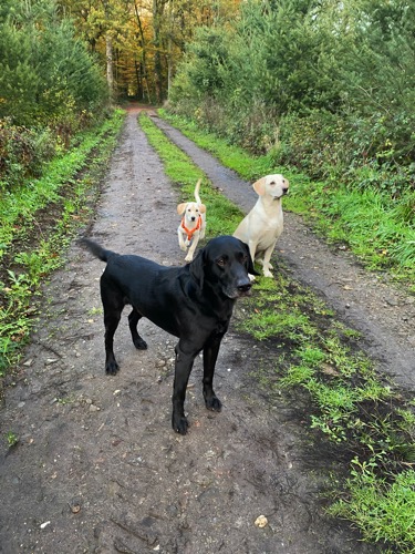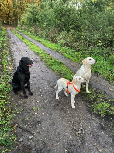 Heute trafen sich Susanne und Helga. Gemeinsam mit Nura, Bela und Corvin spazierten sie durchs Revier. Die Drei sind wie eine kleine Familie zusammen gelaufen. 😍